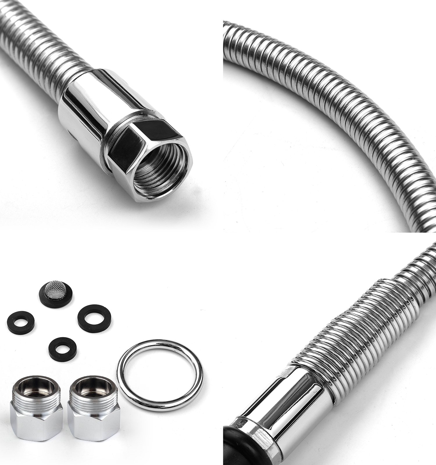 - 【Package List】Grey Pre-Rinse Sprayer*1;Stainless Steel Hose 45" *1;Adaptor 7/8 male to M22*1 female * 1;Aaptor 7/8 male to 1/2NPSM female * 1,O-ring*1;Rubber Ring*3;Rubber Ring With Filter *1